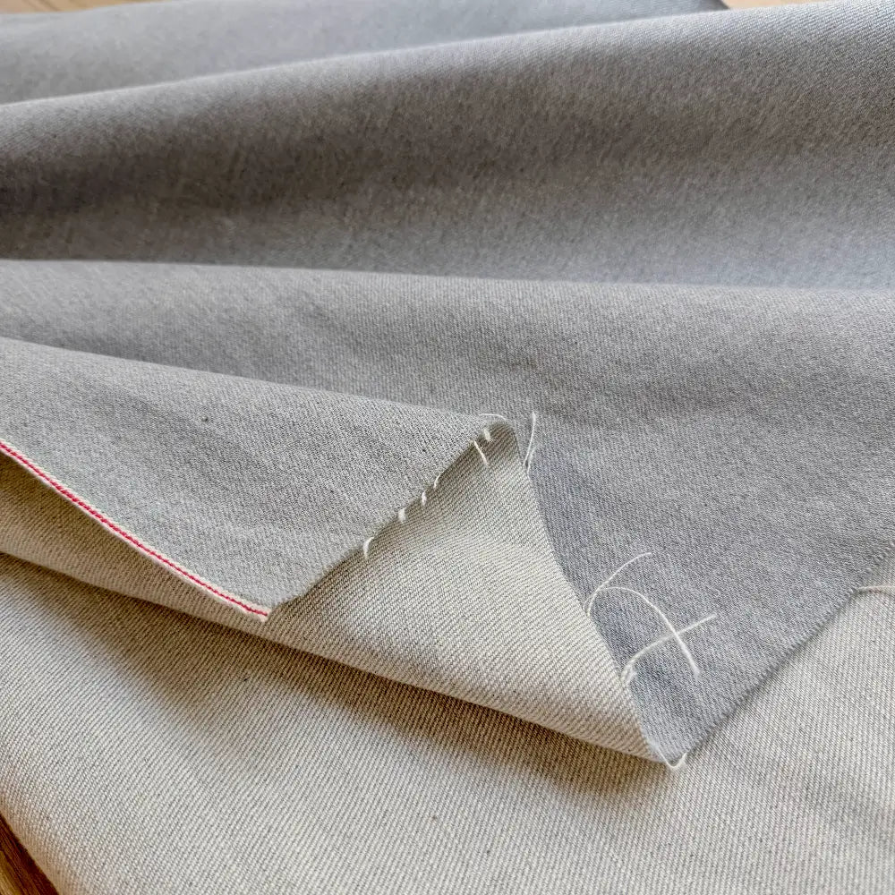 ג'ינס אפור תוצרת יפן עם אימרה אדומה לאורך הבד. מתאפיין במגע קשיח ויציבות טובה מאוד. מומלץ לפרטי לבוש ישרים או מחויטים כגון מכנסיים, ז'קטים, חצאיות ושמלות.