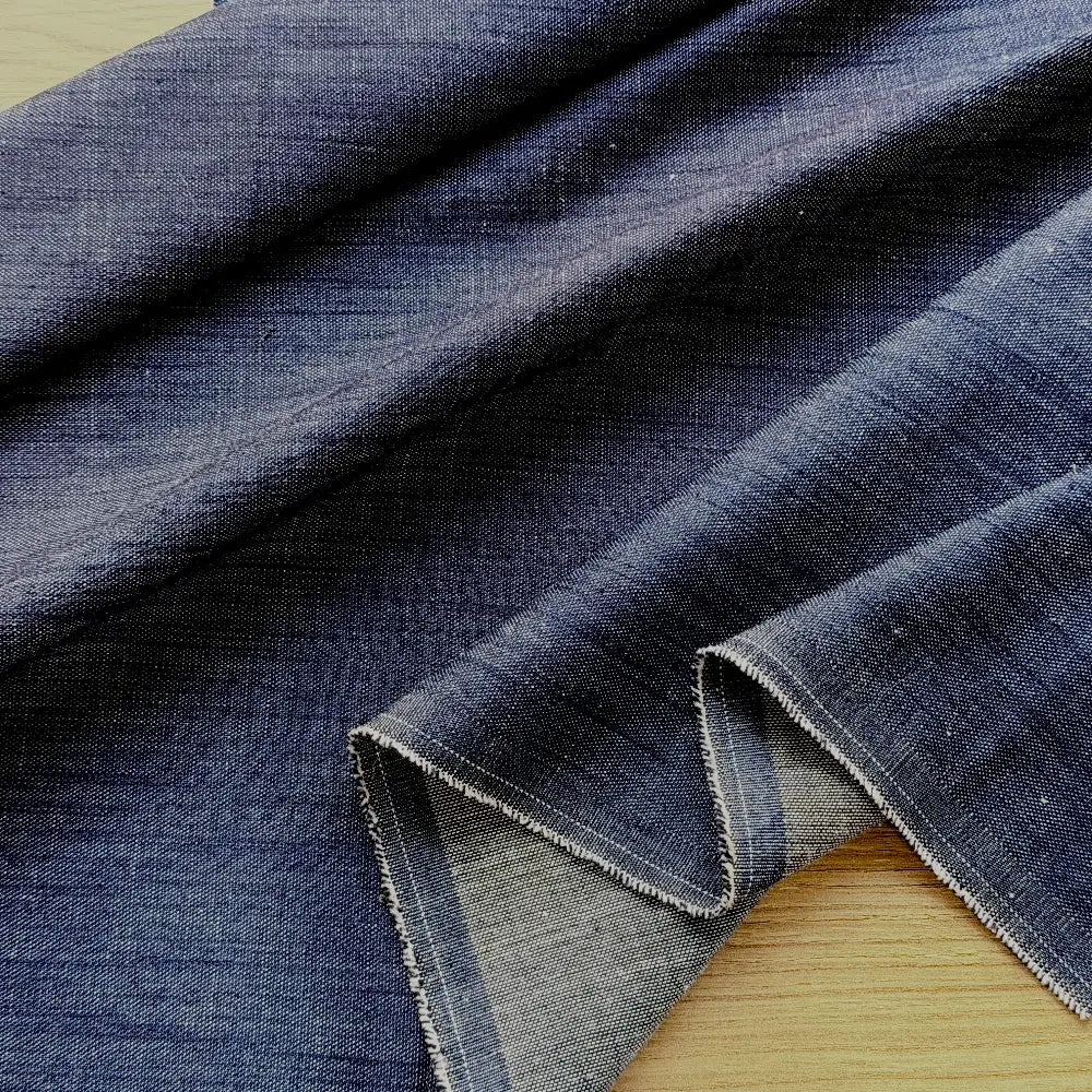 ג'ינס בעובי בינוני בגוון כחול כהה, במגע נעים ויציבות עדינה עם תנועה. מומלץ לפרטי לבוש ישרים עם תנועה כגון חולצות, שמלות, ומכנסיים.