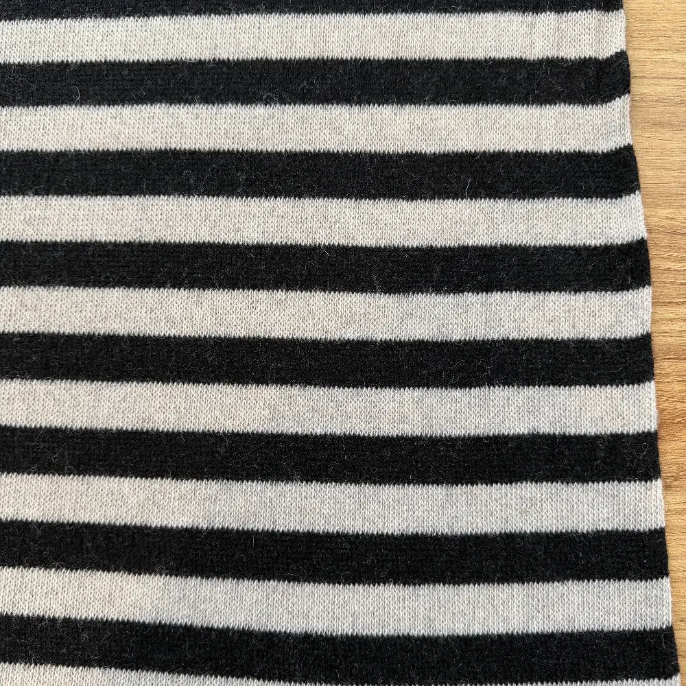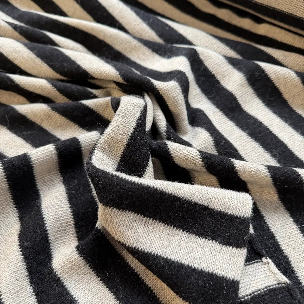 סריג סרוג בסריגת לולאות בגווני בז'/שחור או בז'/כאמל בפסי רוחב סימטריים. מתאפיין במגע נעים, חורפי ויציבות עדינה. מומלץ בעיקר לפרטי לבוש חורפיים עליוניים כגון סוודרים, שמלות ישרות ועליוניות באורכים משתנים.