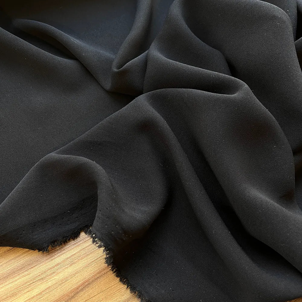 אריג קרפ דשין סינטתי בגוון שחור. מתאפיין בנפילה מעולה, מגע רך ונעים, דק ומעט שקפקף. מעולה גם לביטנות ומומלץ לפרטי לבוש נשפכים כגון חצאית נשפכת, שמלה נשפכת, מכנסיים עם גומי וחולצת טי.